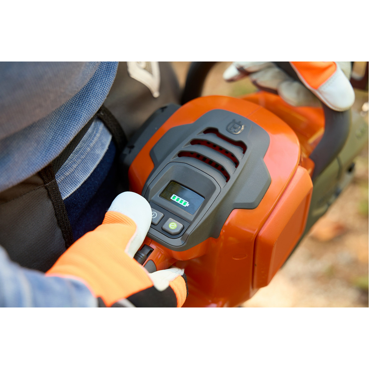 User-friendly keypad - Optimise the chainsaw’s performance with a simple push of a button. Equipped with LED indicators showing the battery status, ruggedised hard top buttons for improved control – even when wearing gloves.
