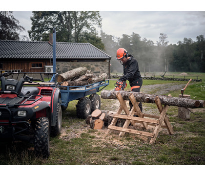 Flip-up tank cap - The clever cap design allows for easy loosening and tightening of the oil cavity and is tethered to the saw to eliminate the risk of becoming lost.